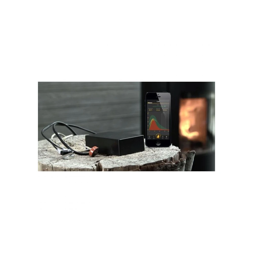 Med Aduro Smart Response bliver din iPhone eller iPad din personlige fyringsmester, der sikrer korrekt fyring og optimal udnyttelse af dit brænde. Aduro Smart Response er en enhed med to sensorer, der kommunikerer trådløst med en app på din iPhone/iPad. Sensorerne følger forbrændingen og app’en guider dig på baggrund af meget omfattende test og erfaringsgrundlag. I app’en vil du altid kunne se, hvornår du fx bør lægge brænde på, hvor varm din brændeovn er og om ovnen brænder ved for lav eller høj temperatur.
