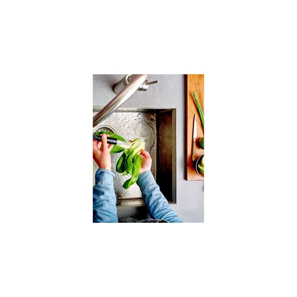 Quooker flex er et nyt innovativt design, hvor du har mulighed for at trække tuden ud på armaturet når du f.eks. skal gøre vasken ren, skylle grønsagerne m.m.